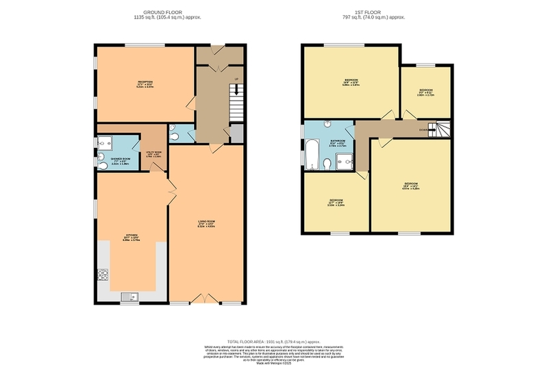 SHOWER ROOM: Tiled floor, shower cubicle with thermostatic shower, closed coupled W/C, pedestal basin, 2 x UPVC obscure windows to side aspect