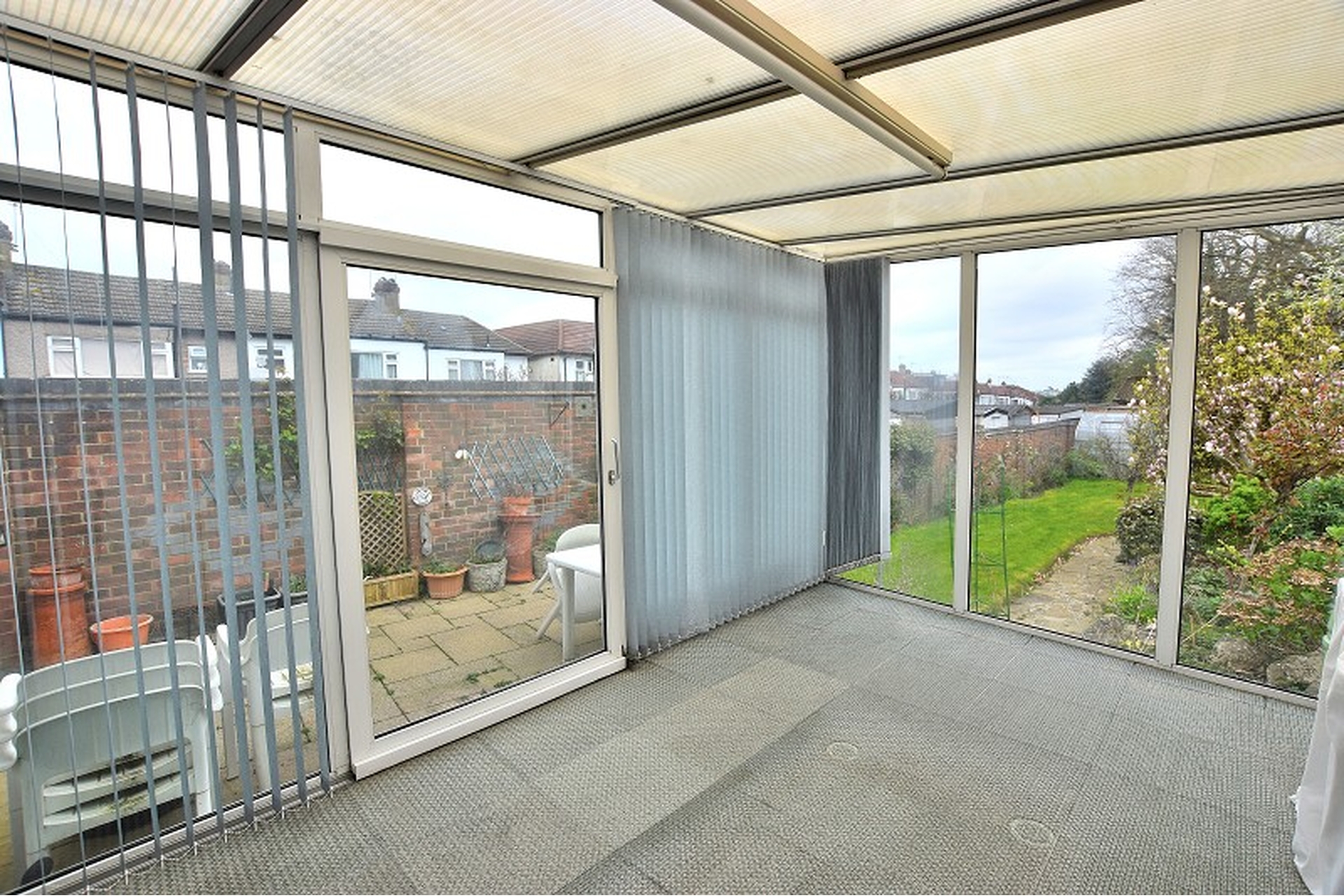 CONSERVATORY: Carpet, UPVC double glazed conservatory with sliding patio doors, electric wall heater.