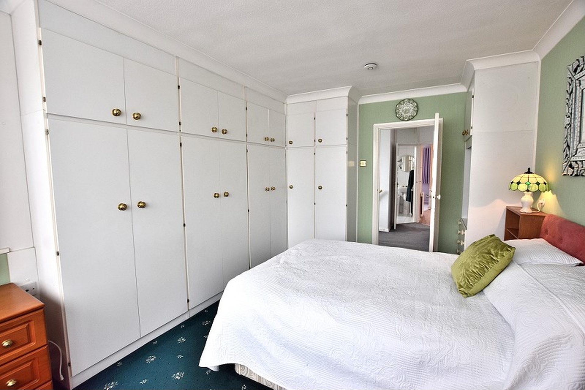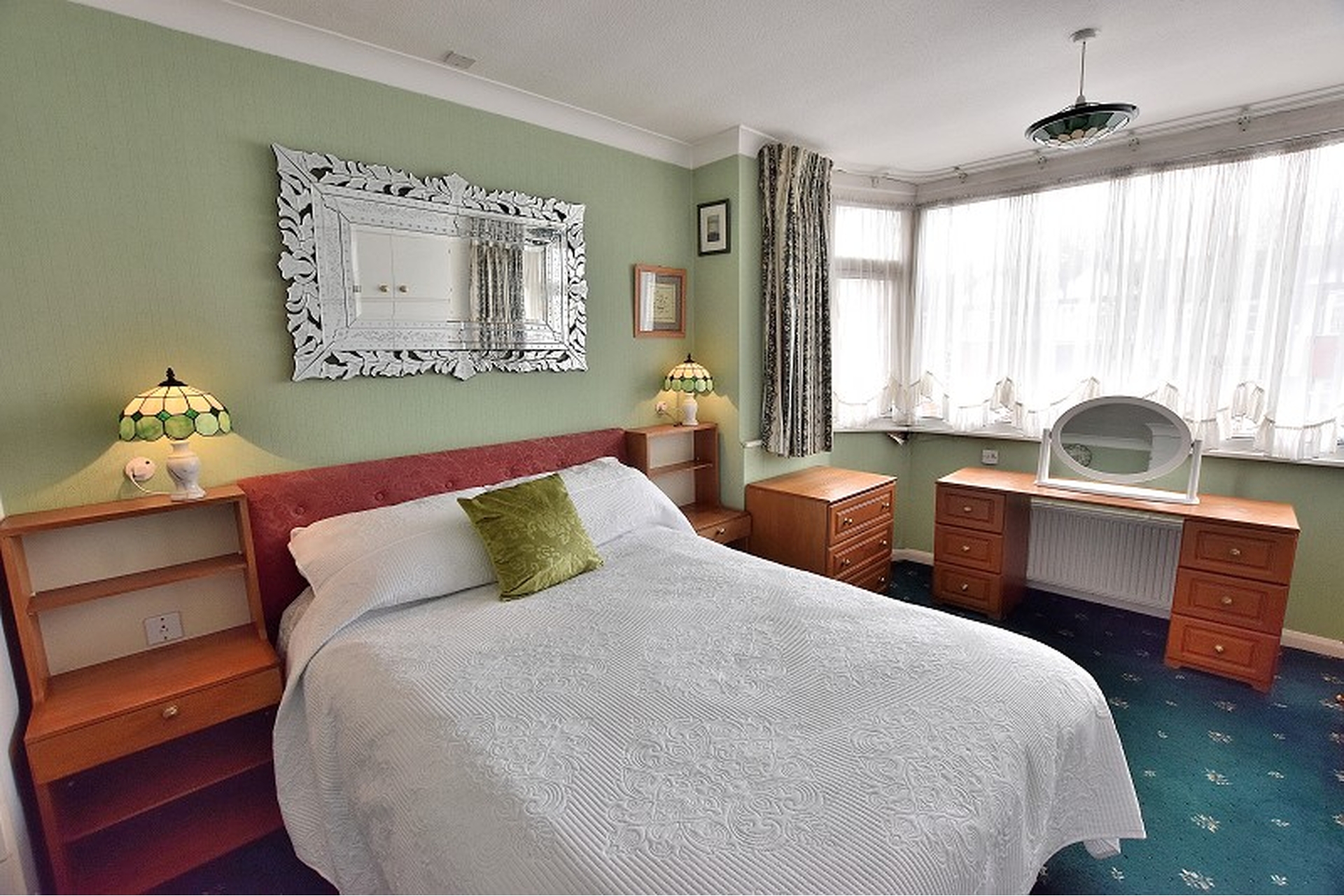 BEDROOM 1: (Front) carpet, fitted wardrobes, cornicing, radiator, UPVC double glazed bay window to front aspect.